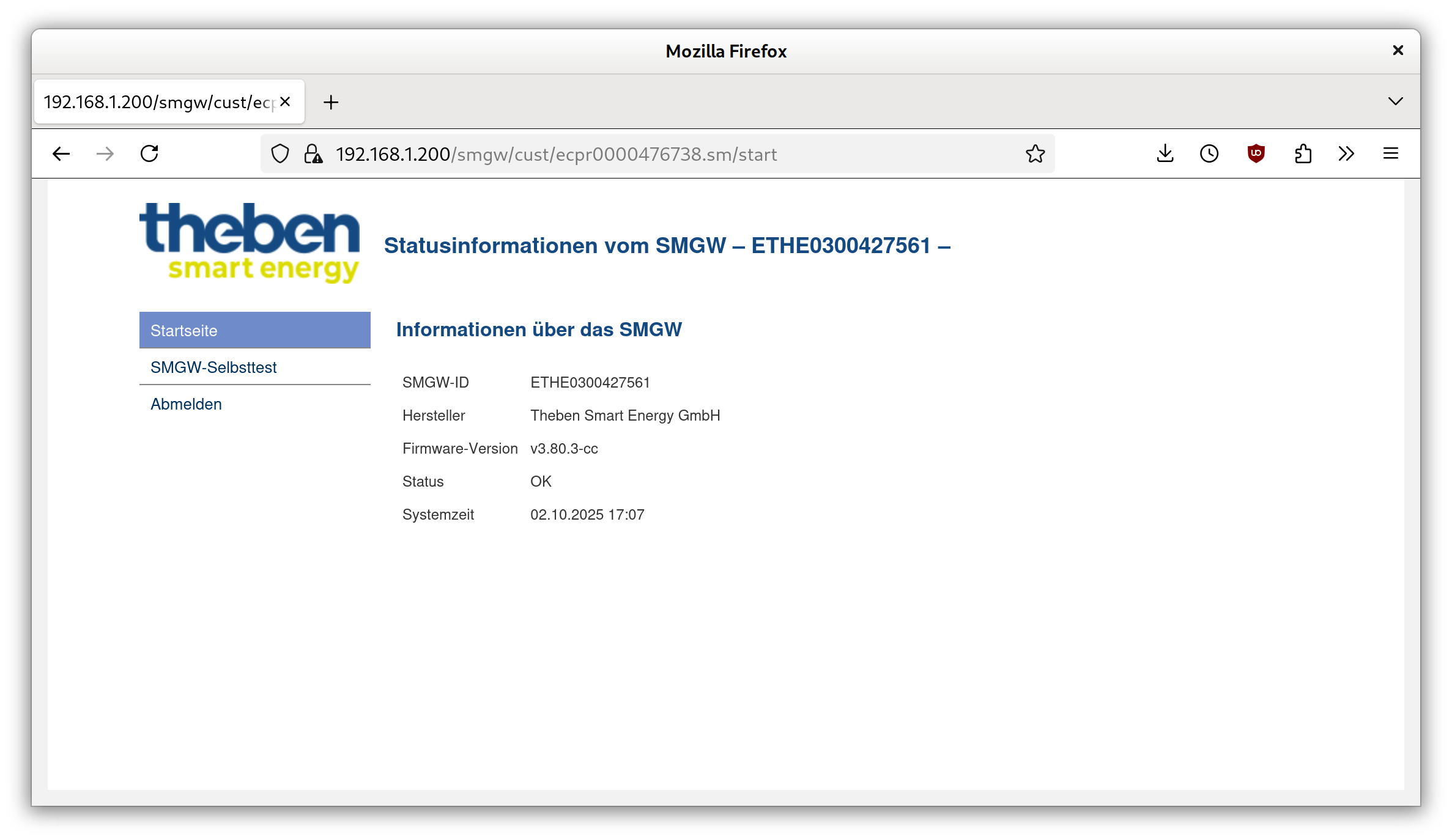 Jetzt war der Weg frei, um an den aktuellen Stromverbrauch der Wärmepumpen zu kommen! Ich öffnete https://192.168.1.200/ im Browser, tippte Benutzernamen und Passwort ein und ... sah das: